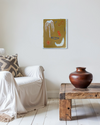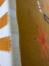 The weary palm tree, the sharp and threatening creatures seemingly surrounding in every area but also with elements of hope; the banana in the corner, ripe and ready.