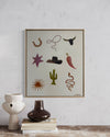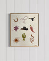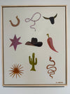 A modern take on some classic western icons! Think horseshoes, lassos, cactus and cow horns, all hand-painted in a warm, earthy palette.